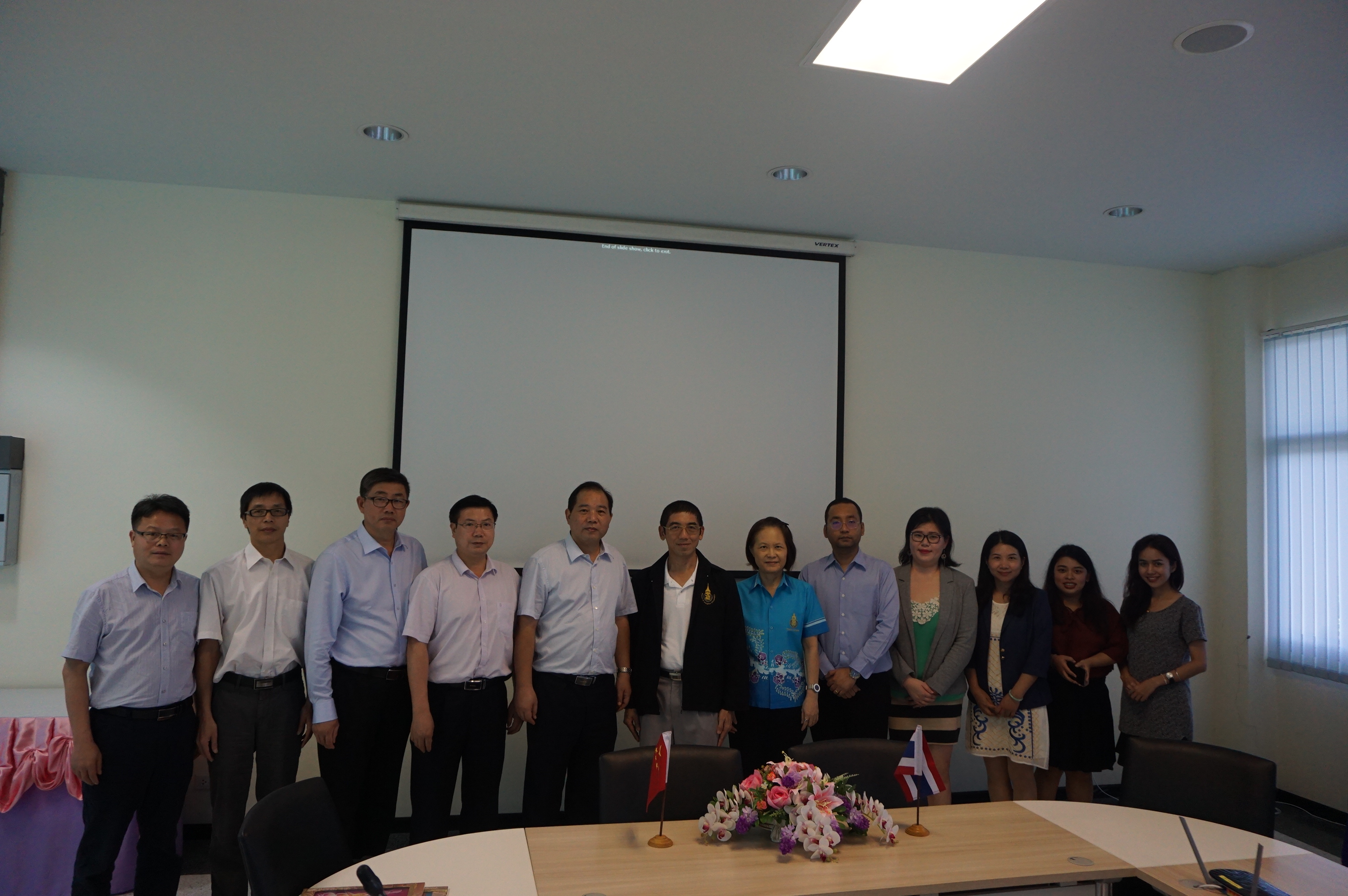 杜方敏校长(左5)与宋卡王子大学普吉分校副校长WorawutWisutmethangoon副教授)(左6)就学生互换、科研合作等方面进行交流