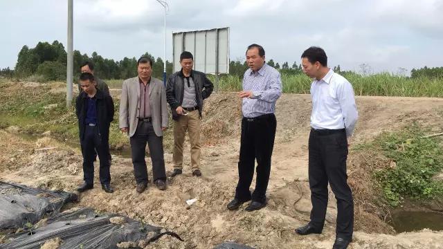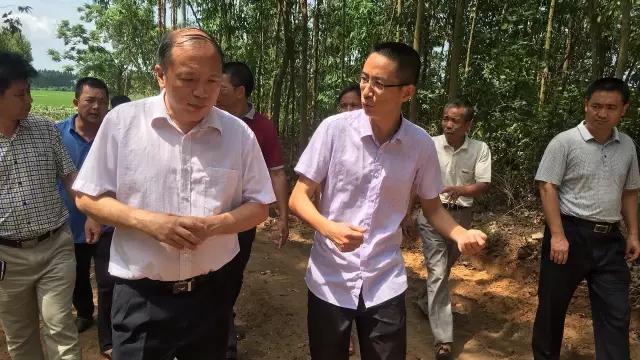 李云华向广东省扶贫办副主任宋宗约(左二)汇报扶贫工作