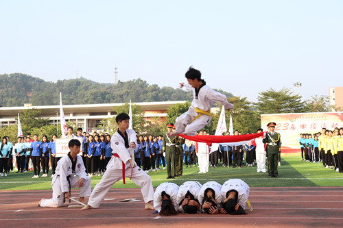 开幕式由纪委书记黄乃文主持。仪仗队、师生运动员方阵有序入场,全体肃立,升国旗,奏唱《国歌》。运动员代表与裁判员代表上台宣誓。啦啦队、跆拳道协会带来了精彩的表演。