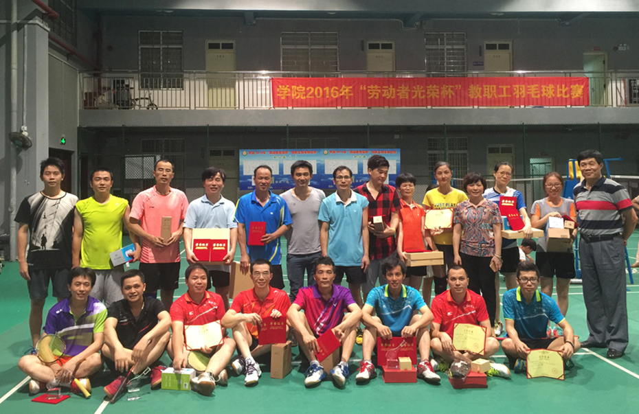 2016年5月27日,学校校本部羽毛球馆灯火辉煌,人声鼎沸,我校2016年“劳动者光荣杯”教职工羽毛球比赛正在这里进行最后一个比赛日的比赛和赛后的颁奖典礼。经过一个多月的漫长赛程,学校“劳动者光荣杯”教职工羽毛球比赛在这里圆满落下帷幕。