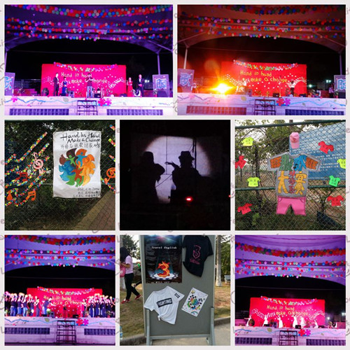 2014年11月24日晚,由外语系主办的“外语系班歌班服大赛”在我院北校区足球场隆重举行。何伟副院长、学生处赵锦权处长、我系蔡旻涛副主任、全体辅导员、外教Rocky以及大三的学生代表应邀出席本次大赛,现场气氛活跃,大一各参赛班级在台下列位以待。