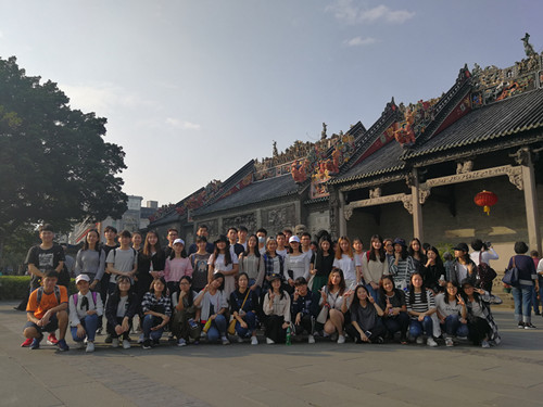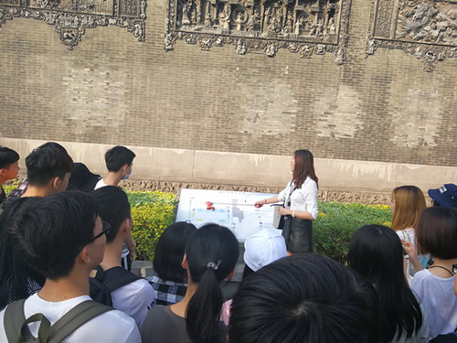 2017年11月10日,旅游英语2016级涉外导游1、2班的同学在任课老师刘志霞的带领下,前往陈家祠进行了《中国旅游地理与文化》课程的校外实践学习。本次学习的主题是针对“项目三 中国古建筑”的内容。在学习了基础理论的前提下,教师要求学生掌握陈家祠中的建筑工艺,包括砖雕、木雕、石雕、陶塑、灰塑、铁铸、彩绘等。现场教学中,老师首先带领同学们游览了陈家祠,讲解了主要游览线路和建筑工艺,并给出启发性的问题,接下来,学生分小组进行建筑工艺的观摩、研究、讲解。陈家祠内游客络绎不绝,有的学生在完成实践学习任务后,自告奋勇给游客进行了讲解,把学会的中国古建筑知识运用到导游工作中,让这些意外遇到的客人赞不绝口。现场实践教学能够让学生理论与实践相结合,不仅对建筑工艺有直观的了解,更能够锻炼现场讲解能力。