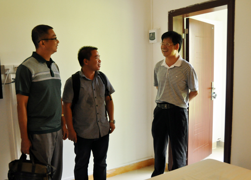 杨群祥书记(右1)到茂名农垦建设挂职教师住宿,了解教师生活、工作等情况