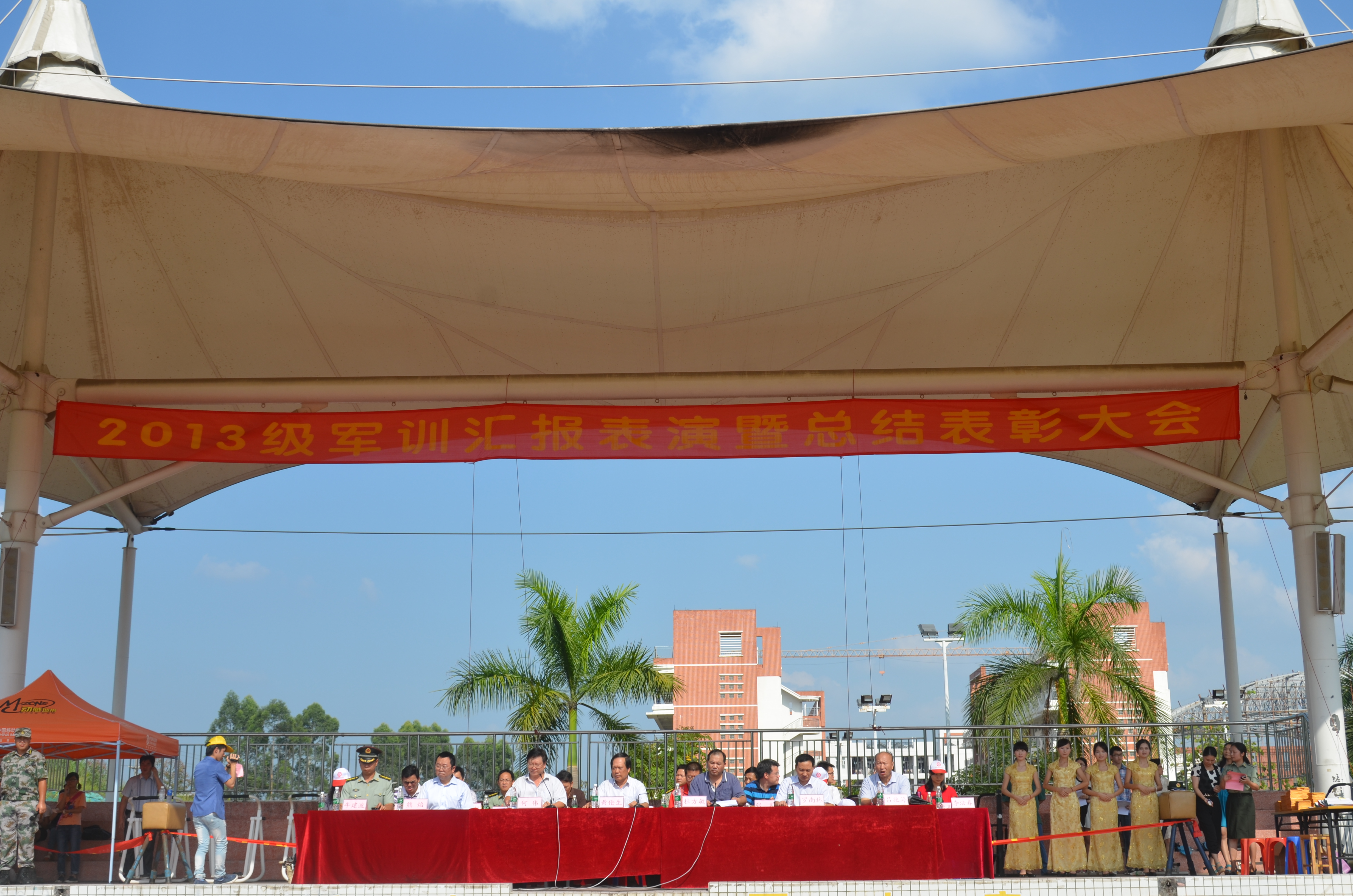 2013年9月18日,我院隆重举行2013级新生军训汇报表演暨总结表彰大会。大会分两个会场进行,国际交流学院于当天上午在粤垦路校区举行;其余各系于当天下午在北校区举行。学校领导及海珠区国防教育训练基地的教官出席了大会。
