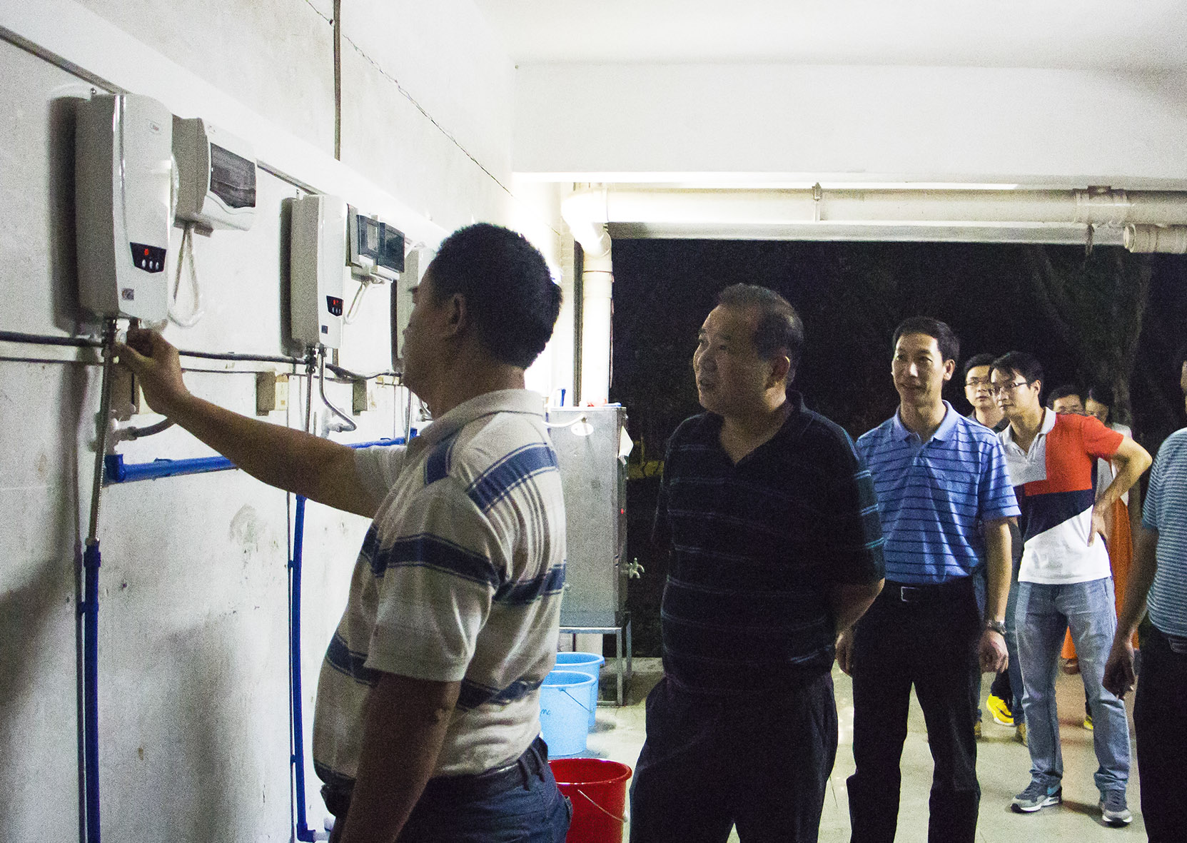 2016年10月14日晚,校长杜方敏在纪委书记黄乃文的陪同下,带领总务处、学生处、学校办公室等部门领导以及北校区各系学生管理副主任、全体辅导员,深入北校区学生宿舍现场办公,督办热水供应问题。