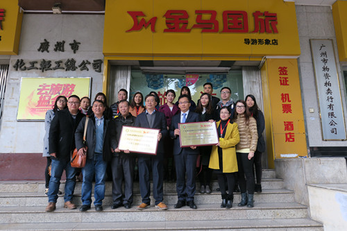 2016年12月29日,我校外语系旅游英语专业与广州市金马国际旅行社共建的“省级大学生校外实践教学基地”揭牌仪式在广州市金马国际旅行社举行,招生就业处副处长李一村,外语系副主任蔡旻涛,旅游英语专业负责人胡爱清老师以及刘志霞、肖玲、刘晶晶等老师,金马国旅相关负责人等共同参加了挂牌仪式。