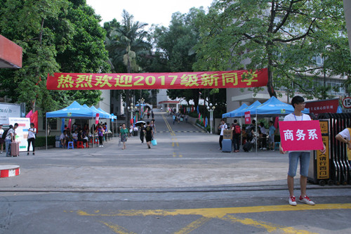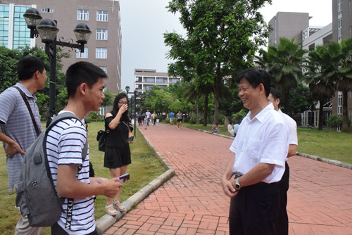 党委书记杨群祥、校长杜方敏、党委副书记、副校长熊焰、副校长何伟、副校长罗南林、纪委书记黄乃文等校领导深入粤垦路校区和增城校区迎新现场指导工作,欢迎新农工商人,与新生和家长热情交谈;向各系和各部门工作人员详细了解现场运作、后勤服务等工作情况,对各部门为迎新工作作出的努力表示感谢,并要求各部门工作人员和迎新的各学生组织以饱满的热情和认真的态度,为新生和家长提供热情周到的服务,让他们感受到农工商大家庭的温暖。杨群祥书记在新生报到现场,与来自我校帮扶的博袍村学生、热作系2017级园林技术专业新生邓妃妹,鼓励她努力学习文化知识,将来回馈家乡。据了解,学校为帮扶村的学生提供了部分学费减免、生活补助等扶助政策。杨书记还与管理系2017级文秘专业的学生袁燕玲和她的家长热情交谈,鼓励她在校期间积极参加社会实践活动,学会自主学习和自我学习。