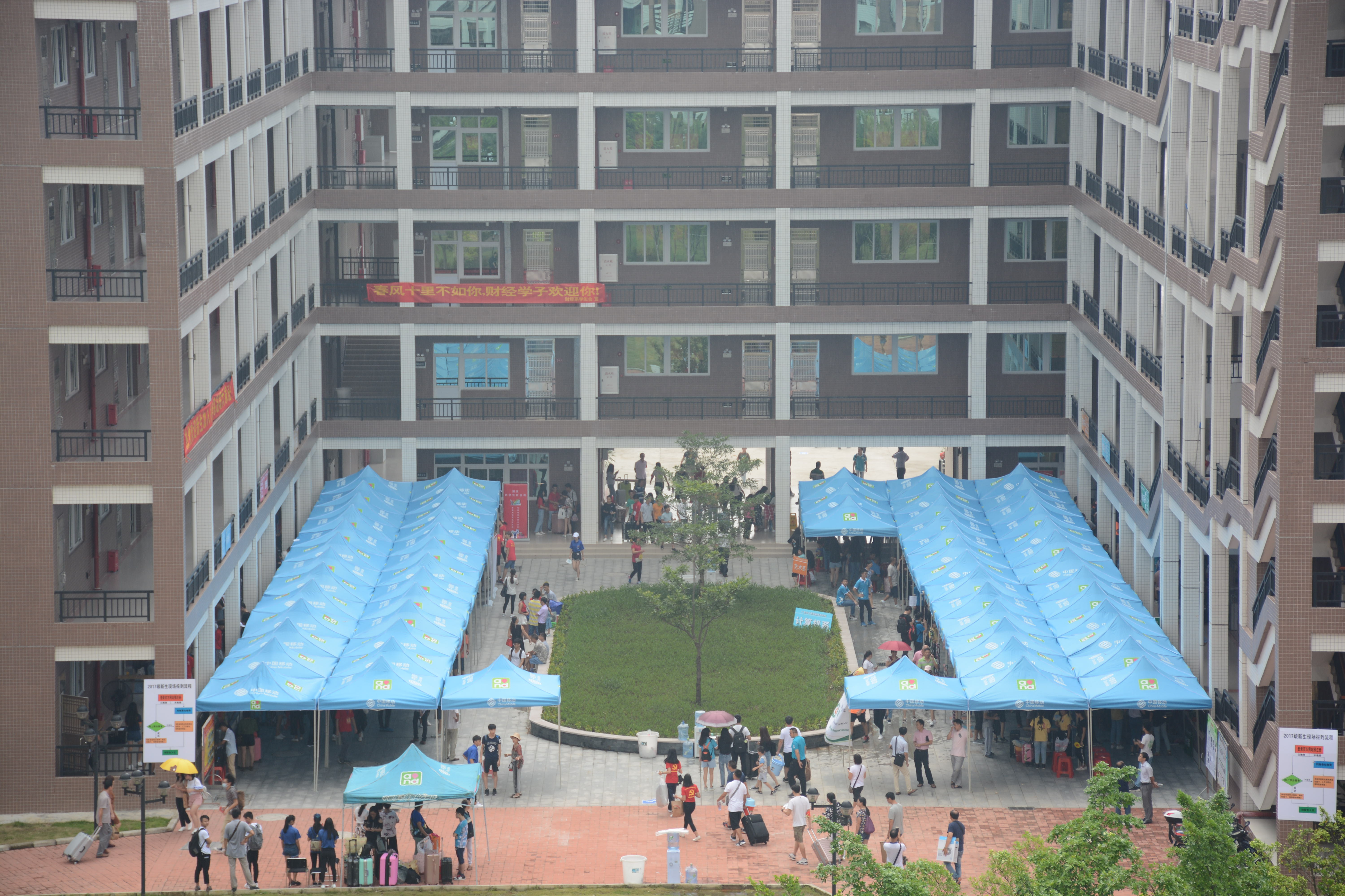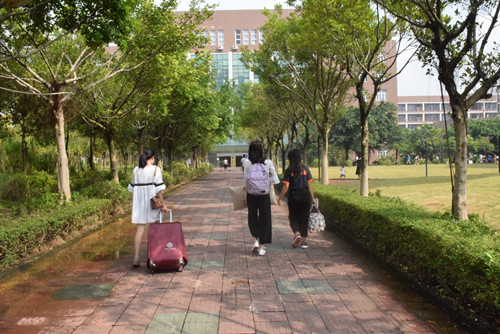 2017级管理系房地产专业的小欣今年还不到17岁,是个标准的“00后”。父母一早就陪她来到学校,小欣考上大学,父母固然高兴,高兴之余也透露着担忧:“平时她都很乖,喜欢待在家里,放假也很少出门,现在一下子独自求学,我对她是各种担心。”面对母亲的担忧,小欣有点不好意思,小欣的母亲继续说:“希望她上了大学可以变得开朗点,虽然平常很独立,但是更希望她可以交多点朋友,”一边说还不忘记拉着沉重的行李箱,还提醒女儿天气热多喝水。