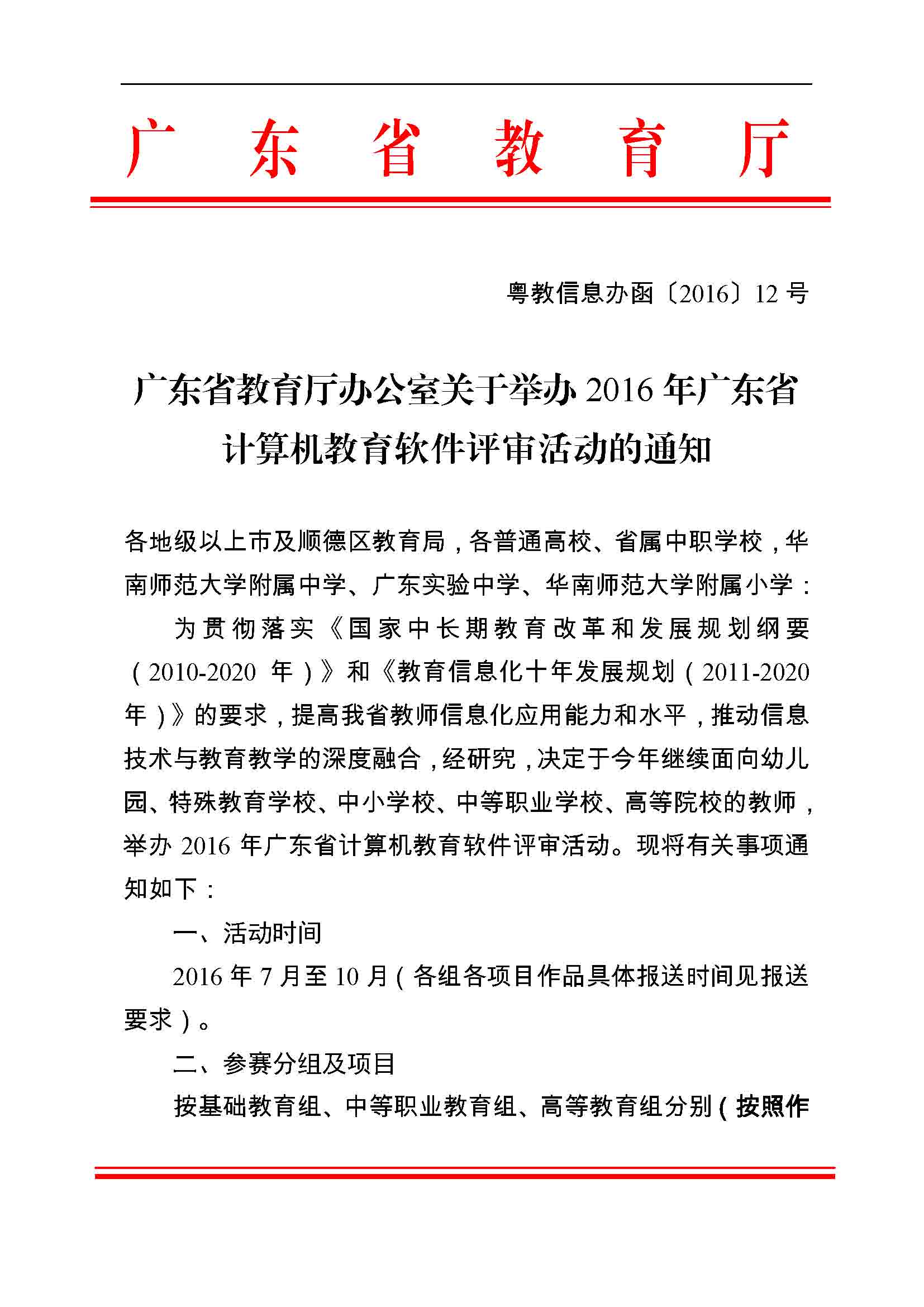 广东省教育厅办公室关于举办2016年广东省计算机教育软件评审活动的通知