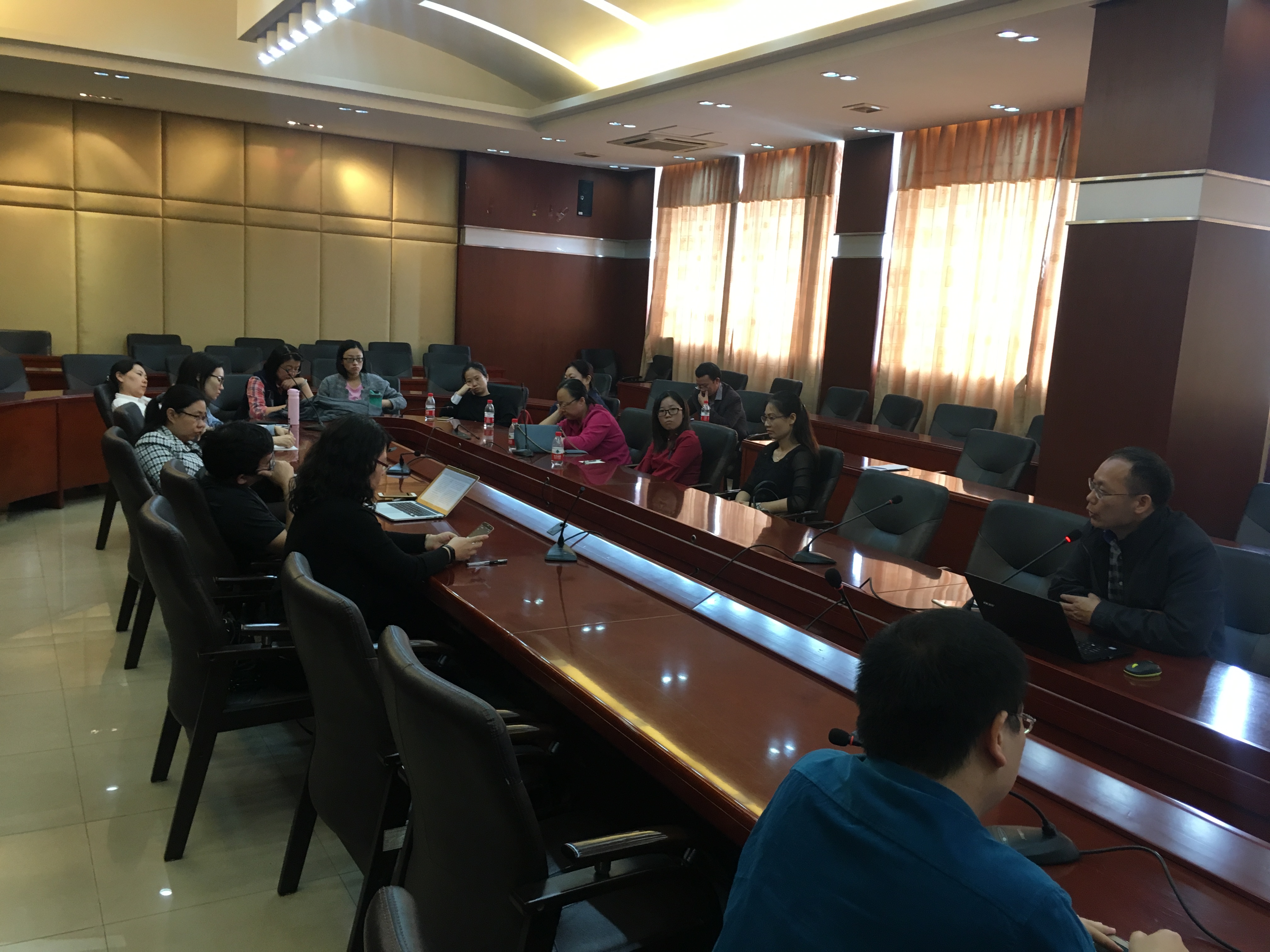 公开示范课结束后,何伟副校长组织全校双语教师在教科楼11楼会议室召开双语教学交流会,教务处高俊文针对今年学校双语教学工作做了详细的报告,双语教学评审和与会老师也分别畅谈了自己的感想。