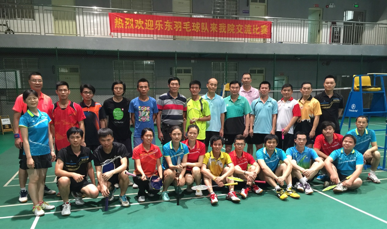 2016年4月16日下午,乐东羽毛球队来访我院,与我院教工羽毛球俱乐部进行了一场交流比赛。学院工会主席谢国强同志莅临比赛现场,接见了来访的乐东羽毛球队队员,与双方羽毛球队员亲切合影留念,并亲自担任双方交流比赛的第一场比赛裁判。