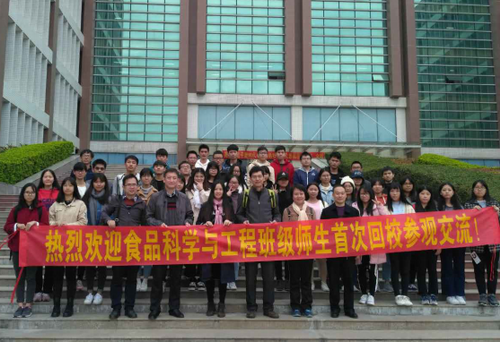 为了更好地贯彻落实我校与嘉应学院专本协同育人培养工作,2017年11月26日上午,2017级食品科学与工程专业师生一行60人来到学校参观交流。出席本次参观交流会的有嘉应学院的生命科学学院的副院长刘志伟、主任况伟、夏丹老师和钟艳梅老师,我校食品加工负责人袁利鹏老师、孔凡利、李荣彬,林丹琼等老师参与了接待。