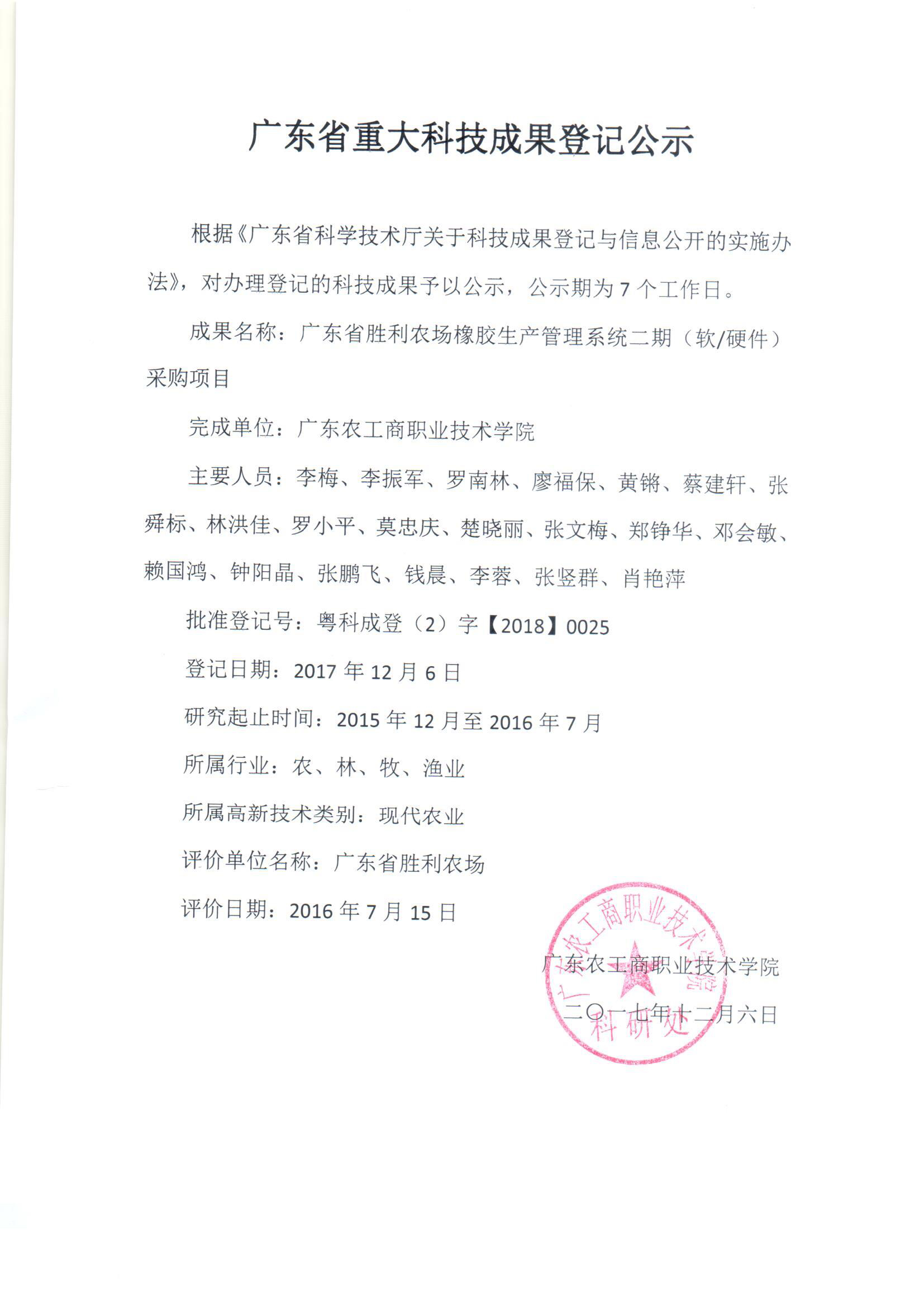 广东省重大科技成果登记公示