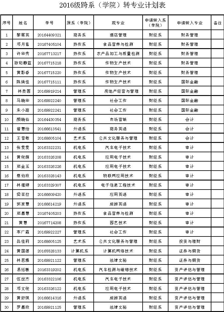 2016级跨系(学院)转专业面试时间、地点安排表 (2017年3月2日上午) |