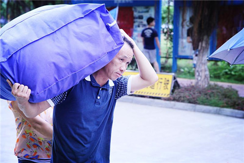 迎新现场下着小雨,记者在迎新校道上偶遇了广哥和孙大娘。