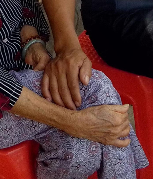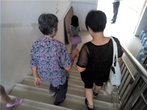 记者询问下得知广哥和孙大娘的朋友正是附近机电系的大本营中,远远相望,认出故知,他们就奔向对方。他们的朋友就是新生董小晴(化名)与董妈。董妈宛如化身孩童,奔向温暖的怀抱。孙大娘步履蹒跚,但在目光接触的一瞬加大了马达,迈向对方,相接之时,两双手紧紧相握,有千丝万缕的思绪。校道上人来人往,他们激动地互诉家常。