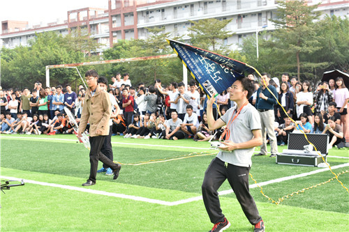 无人机正式表演之前,主持人介绍科普的关于无人机小知识,指出无人机分为固定翼和多旋翼,多旋翼又有四旋翼与六旋翼。试飞人员在讲解中也在紧张的调试无人机的工作参数,为这次表演做好万全之备,争取给同学们带来一场视觉盛宴。在同学们的热情期待下,无人机开始进行精彩的表演。此次参与的无人机种类丰富,同学们对试飞员的花式操作十分赞扬,连连叫好,活动现场十分热烈。同学们在看完表演之余,还兴致大发,想测试一下无人机的莲花盾反干扰系统,拿出手机参与性能测试,无人机强大的性能让同学们深深折服。表演结束之后,同学们上前与试飞员亲切交流,近距离一睹无人机的风采。