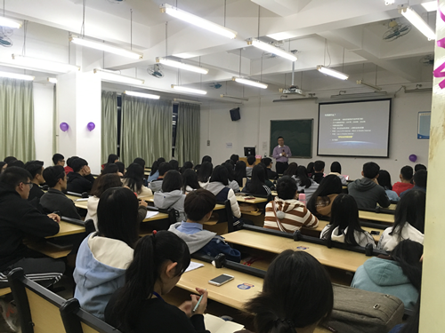 2017年 11月24日晚,学院商盟营销协会于教科楼603教室开展本学期第三期营销沙龙讲座,特邀有多年通信、互联网行业及管理经验的黄锐专家前来演讲,莅临现场有商务系苑丽红主任、许国恩老师、柳颖老师等嘉宾,由王博峰主持本次活动。