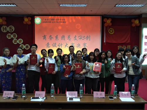 最后,商务系副主任苑丽红和商务系团总支书记许国恩都做了发言。苑主任对本次大赛举办的意义和效果给予高度的肯定和赞扬。她说,H5的应用非常广泛,它应当成为同学们需要掌握的一项技能,这项技能在日后在同学们就业的时候,无论是为企业和个人的形象宣传都能起到非常重要的作用,希望大家能掌握这项技能并运用于实践当中。许书记说,当前我院大力推进“双创”活动的开展,我系团总支响应学院号召,举办能激发大学生创意和创新的活动。本次H5创意策划比赛提交的作品数量多、参与面广、作品主题新颖、富有创意,展现了我院学子大胆创新、勇于创新、善于创新的良好风貌,像这样的比赛我系团总支还会继续举办,以不断创新的理念和载体提升我系团总支在服务青年、引领青年方面的能力。通过比赛,同学们了解并掌握应用H5技术去实现自己的创意、去营销自己。也为我院“双创”工作添砖加瓦,很好的营造了“万众创新”的校园氛围。