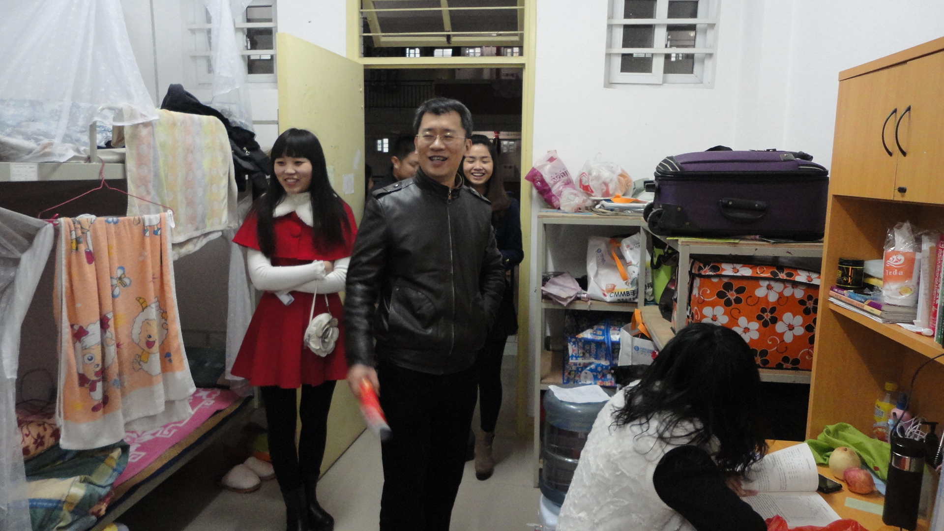 2013年3月3日晚8点,外语系蔡旻涛副主任、学生党支部书记朱淑梅老师、辅导员林庆建、劳日强和陈雯霞老师带领外语系学生党支部、团总支与学生会干部一同走访宿舍,慰问同学们新学期的活动。