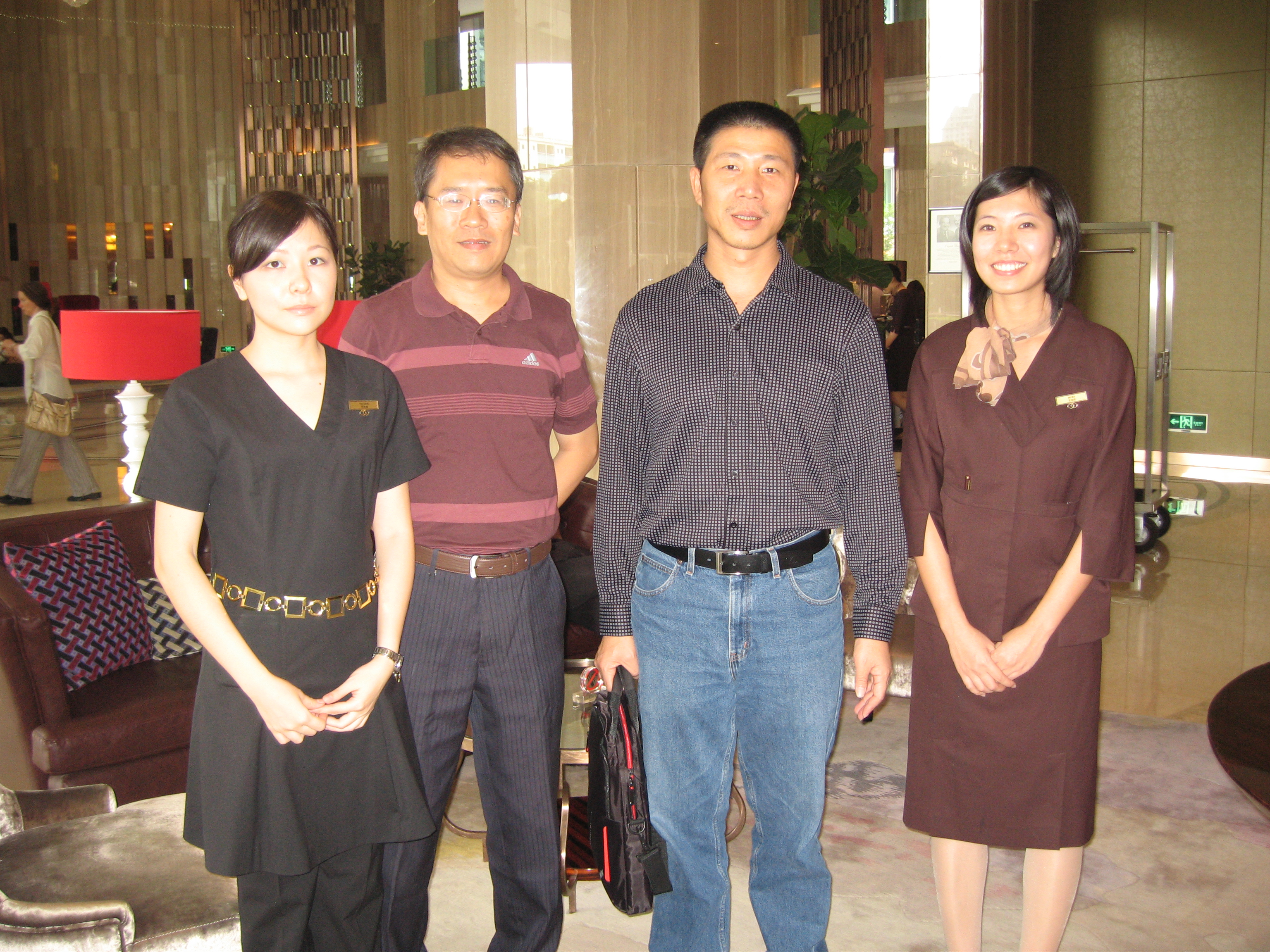 10月27日下午和11月1日,外语系梁悦主任、林永成副主任、蔡旻涛副主任和辅导员老师分别来到广州圣丰索菲特大酒店和嘉逸皇冠酒店,看望正在这里进行三年级专业课实践教学的09旅游英语(涉外酒店接待方向)专业的同学们。