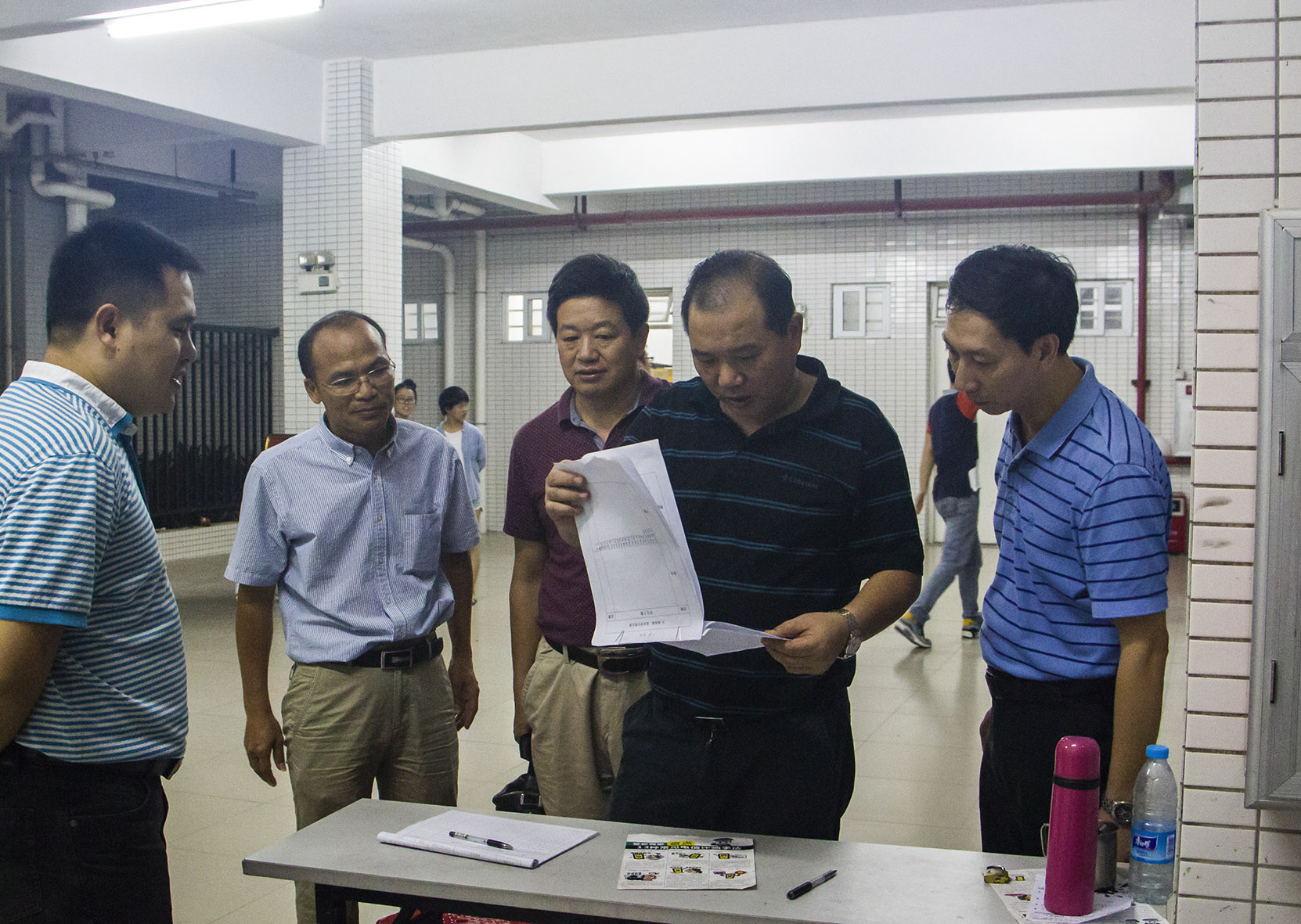 杜方敏校长查看临时淋浴房使用记录