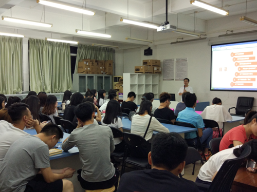 2017年5月16日晚上7点,商务系旅游管理协会在教科楼1001举办了一场《关于旅行社职能发展方向》的讲座。本次讲座邀请了2007级旅游管理专业学生邓海潮(现为广州酷旅旅行社有限公司全国分销事业部大区总)来与同学们分享他的就业之路。商务系苑丽红副主任、黄绍平老师、高欣老师以及旅游管理专业大一大二的学生参加了此次讲座。
