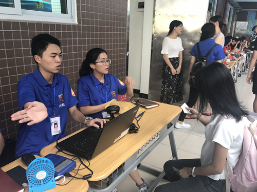 9月9日-10日,我校2017年迎新工作有序开展,近7000名新生陆续报到,加入农工商大家庭。各教学系、各职能部门暑期加班加点,为迎接2017级新生作了大量的准备工作。天蒙蒙亮,校园里人影绰绰,都是早起的工作人员。各位领导、老师、后勤人员以及各个学生组织的志愿者们都已经忙碌在第一线,他们认真付出,确保迎接新生工作的顺利进行。