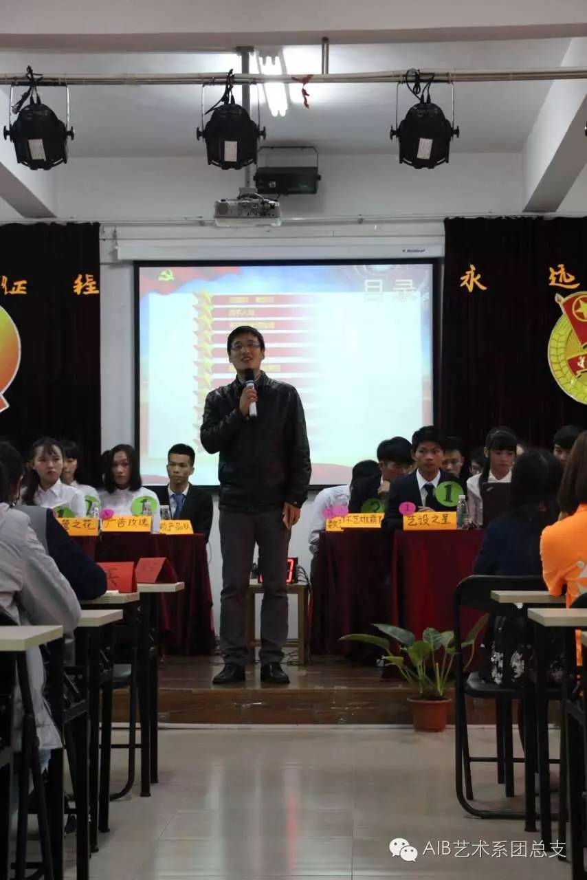 为了引导广大学生了解并学习农垦精神,传承农垦精神与中国共产党长征的革命精神,鼓励农工商学生勇往直前,敢于奋斗,团结互助精神。艺术系团总支于2016年11月29日在实训C605教室隆重举行了艺术系第五届党团知识竞赛。出席本次活动的嘉宾有原学校党委委员、学校关心下一代工作委员会陈锋主任,艺术系党总支副书记邝鑫副主任,艺术系学生党支部书记侯海玉老师,以及学校各系党团嘉宾代表,艺术系五大组织代表,活动取得圆满成功!