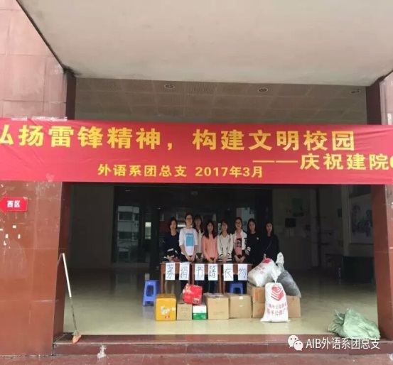 2017年3月,为了我系学生更好地学习雷锋精神,庆祝农工商建院65周年,积极响应国家建设美好校园号召,践行社会主义核心价值观,充实我系学生丰富多彩的生活,外语系团总支举办雷锋月系列活动,活动分为三个小部分。分别是:“活力闯关展青春,团结互助学雷锋”为主题的班级闯关拼图活动、“守望相助,让爱双向流动”为主题的募捐物品活动以及“让爱共享,用精美书签传递你我书”为主题的制作书签活动。