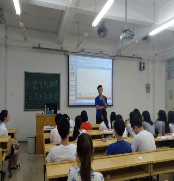2017年5月4日,为了帮助外语系学生能够更深一层的了解“三下乡”活动,外语系团总支举办了“三下乡”经验交流会活动。邀请了btec的嘉宾到场为我们分享“三下乡“活动中的经历。
