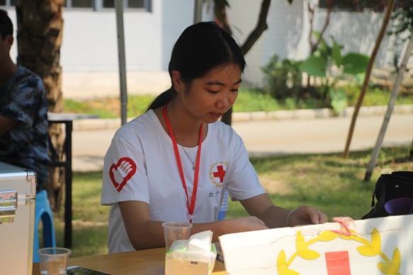 操场上还有让人感动的一幕是,红十字会和助班组师兄师姐们东奔西跑,不辞辛苦的为萌新们送水,只为他们能消暑解渴,陪着萌新们感受阳光的热烈。