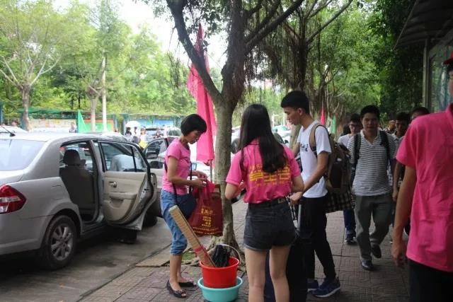 校道旁站着一群可爱的小骚粉志愿者