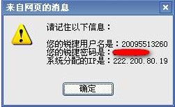 7、开通网络之后,系统会弹出提示框,上面有你的账号信息等等