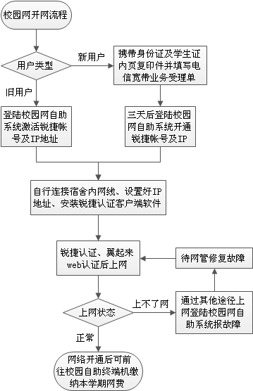 1、自助开网流程图: